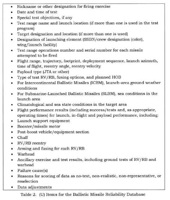 Three databases are maintained for ballistic missiles, cruise missiles, and gravity weapons with the scope of each shown below.[23]