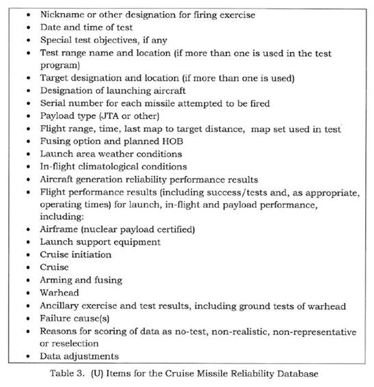 USSTRATCOM uses Service‑provided planning factors in its OPLANs. SI 526‑01 “emphasizes the direct relation between the Service reported planning factors, confidence levels, and the quality of USSTRATCOM‑generated nuclear options.”[18] The Services must conduct IOT&E (Initial Operational Test and Evaluation) to provide operational planners with “reference WSR and CEP values which have a specified degree of precision. Moreover, the Services are instructed to conduct enough FOT&E (Follow-on Operational Test and Evaluation) “to detect, on an annual basis, a given amount of degradation from the previous year’s established WSR and CEP planning factors within a specified level of confidence.”[19]