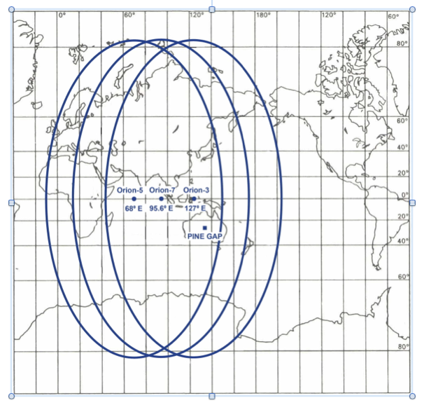 Figure 1. Pine Gap–controlled Orion SIGINT satellite stations, 2015Screen Shot 2015-10-15 at 8.59.40 PM