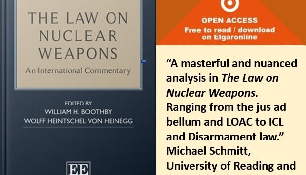 In this essay, William Boothby and Wolff Heintschel von Heinegg explain that The Law on Nuclear Weapons: An International Commentary (Elgar, 2025) aims “to ensure that all those involved in nuclear weapon operations understand what their responsibilities are under international law. By this means, Nuclear Command, Control and Communications arrangements can be drafted that will seek to ensure that nuclear weapons are only ever used in the most compelling, strictly lawful and truly exceptional circumstances where all other options have proved unsuccessful such that there really is no possible alternative–a truly worthy endeavour, one might suggest.”