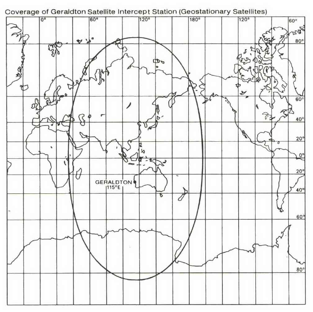 Coverage of Geraldton Satellite Intercept Station, Geostationary Satellites.